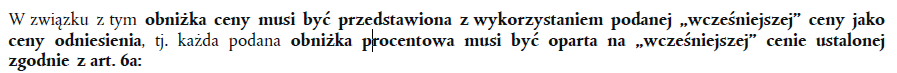 Ponownie – przepisy nakazują tylko wskazanie najniższej ceny z 30 dni przed obniżką, nie wynika z nich nakaz obliczania obniżki od ceny najniższej…