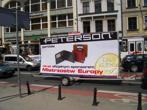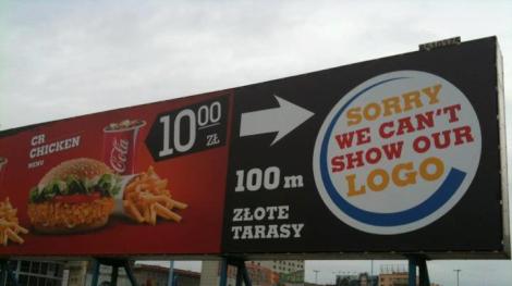 Większość z poniższych zdjęć jest mojego autorstwa, ale zacznę od reklamy, którą śmiało można nazwać klasykiem – Burger King w okolicach strefy kibica w Warszawie i Złotych Tarasów
